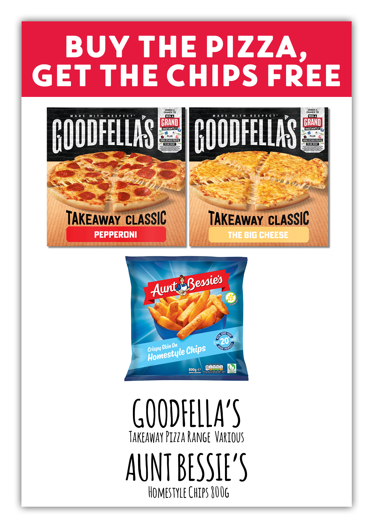 Goodfellas Pizza and Aunt Bessie’s Chips
