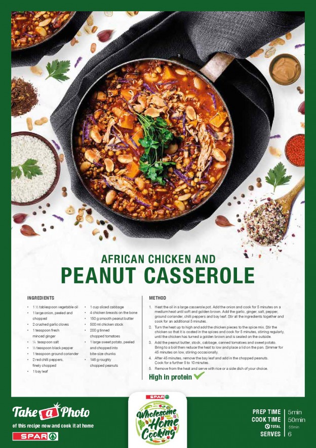 Wholesome Home Cooking African Chicken and Peanut Casserole Apple Crumble Asian Chicken Noodle Soup Carrot Soup Coconut and Lentil Curry Lemon and Mascarpone Tart Mushroom and Black Bean Veggie Burgers Nutella Blondies Pan-Fried Halloumi Parmesan Garlic Crumbed Fish Pork Chops with Onion and Apple Prawn And Bacon Salad With Caesar Dressing Roasted Chilli Chicken Thighs African Chicken and Peanut Casserole Salad with Chicken Steak and Mushroom Pot Pie Steak and Sweet Potato Bowls Steak Foil Parcels Vegetable Zucchini Lasagne Zucchini Noodle Bolognaise